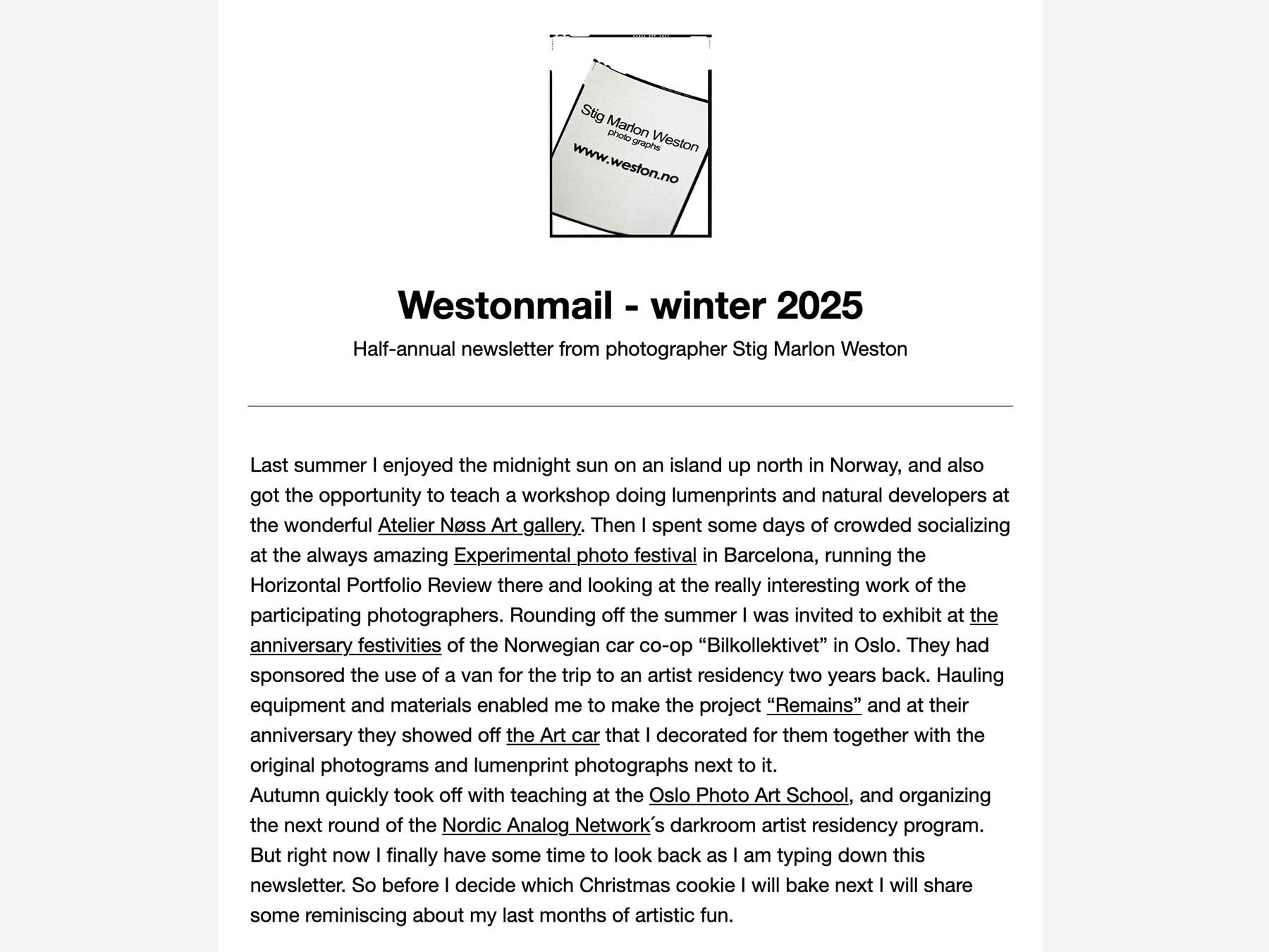 /10- 25 Under fotofestivalen Oslo Negativ kuraterte jeg utstillingen “Resident Host” for Nordic Analog Network. Oslo Negativ foregikk 11. - 26. okt 2025.